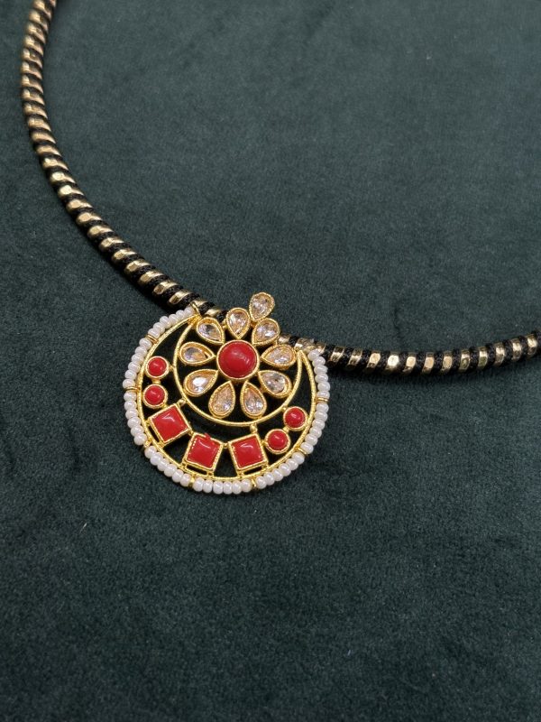 LJ01016-Black hasli with Coral pendant quantity