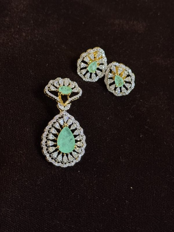 LJ01054-Sea green AD pendent with earrings