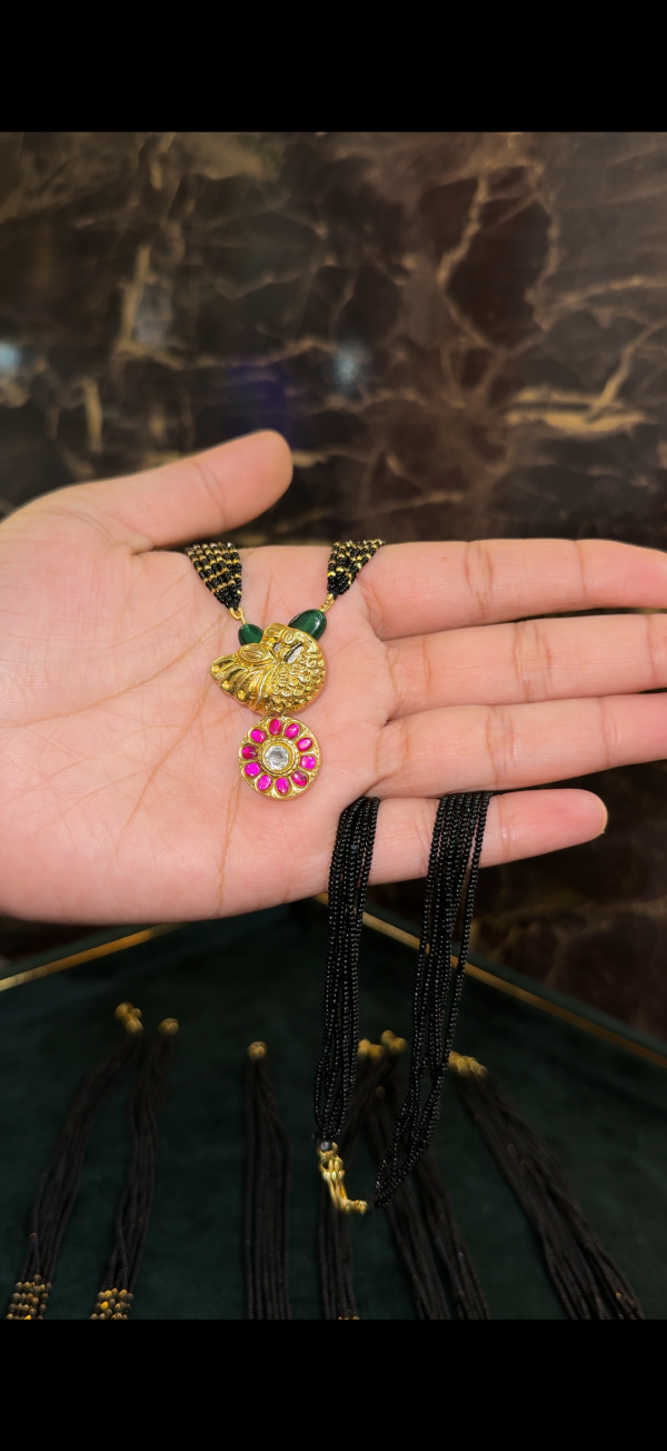 LJ01085-jadaukundan peacock round blackbeads quantity